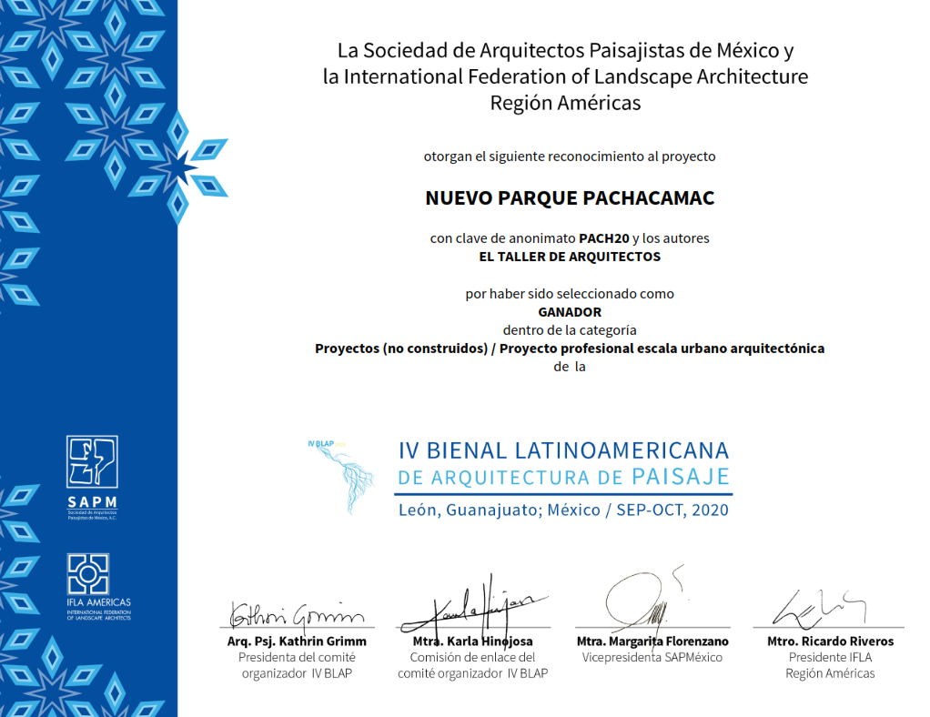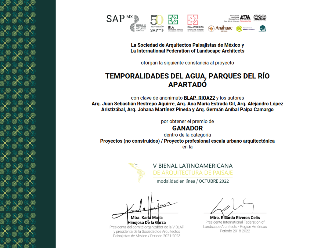 GANADORES: IV BIENAL LATINOAMERICANA DE ARQUITECTURA DE PAISAJE, CATEGORÍA: PROYECTOS NO CONSTRUIDOS Escala Urbano Arquitectónica